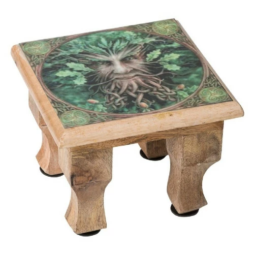 Cute altar table with an intricate greenman print by popular Fantasy artist Anne Stokes