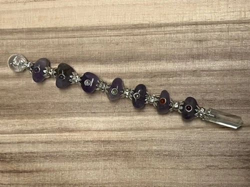 19cm wand with amethyst chunks featuring inset crystals for the chakras and clear quartz end points