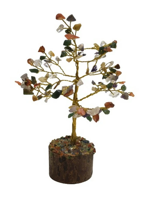 Crystal Wish trees are meticulously constructed using stone chips as the leaves. They are categaroized by how many chips they use – here we have some small sized ones using 100 chips each – they stand between 15-19 cm tall and are set on a wooden base