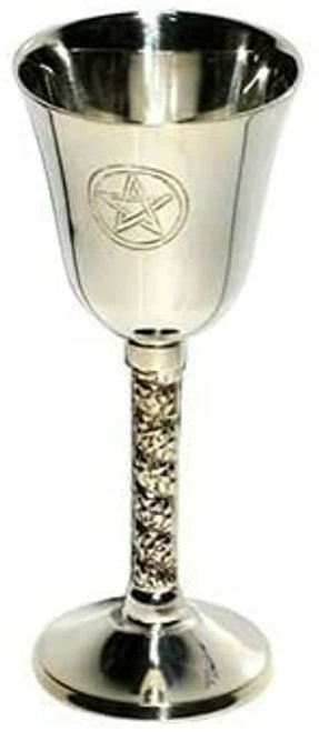 Nickel plated copper chalice featuring engraved pentagrams