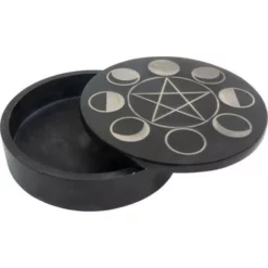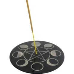 Pentagram Moon Phases Incense Plate – Soapstone With Silver Inlay
