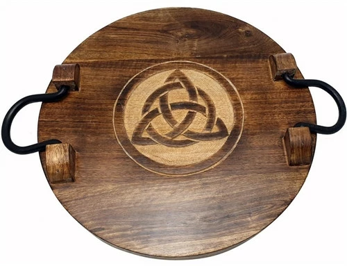 This interesting round Triquetra Altar Tray with iron handles makes for a great portable altar.