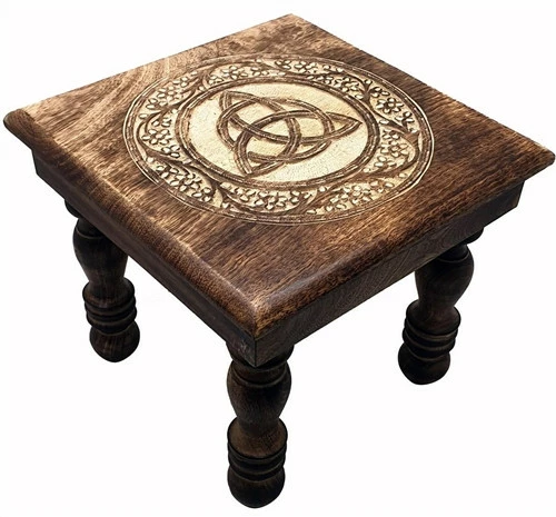 This adorable Sqaure Table would makes for a great feature altar, or crystal / herb display with grid pattern carved in..